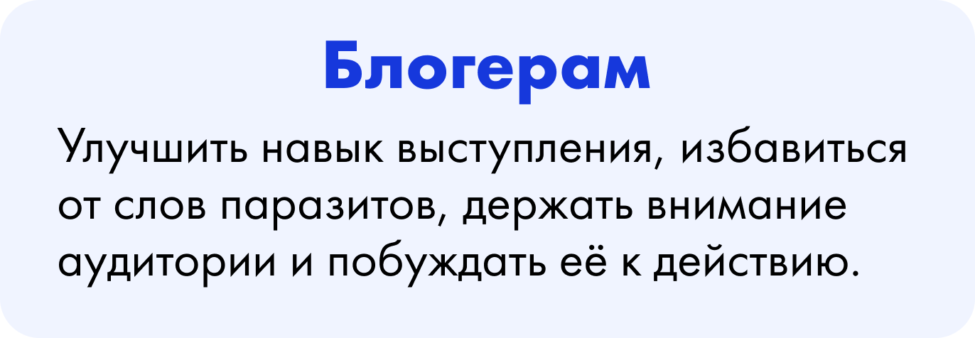 • Моя цель - помочь вам освоить навык выступления на камеру и на сцене, уверенно рассказывать про себя и свои продукты, что поможет вам зарабатывать больше абсолютно в любой нише и любой экспертности